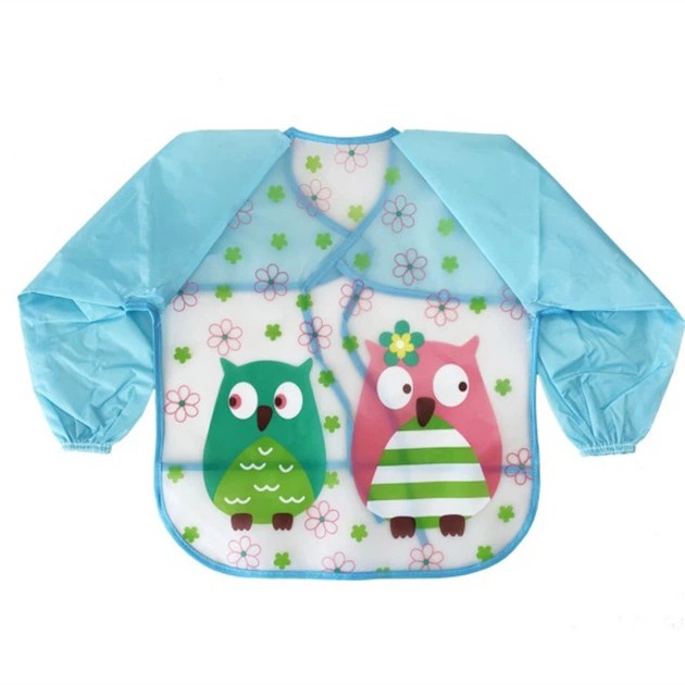 Слинявчик З Рукавами "сови" Mgz-0610-4 Блакитний, Клейончатий, На Зав`язках (282433)