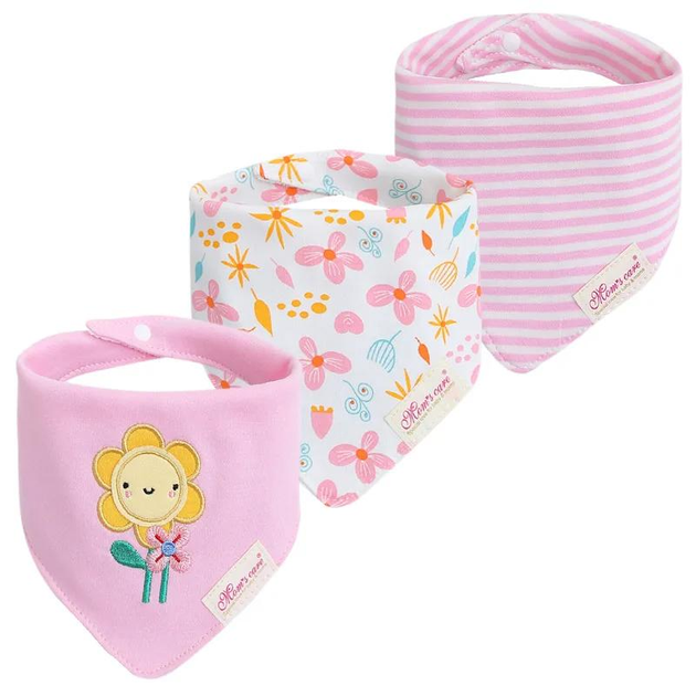 Комплект бавовняних нагрудників преміум якості Mom's Care "Pink Flower" (3 шт) для малюків від 0 до 2 років (BC1080)