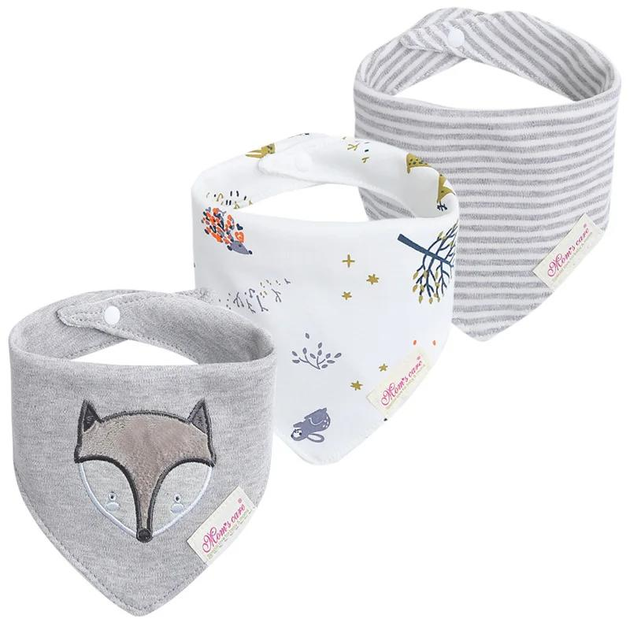 Комплект бавовняних нагрудників преміум якості Mom's Care "Little Fox" (3 шт) для малюків від 0 до 2 років (BC1084)