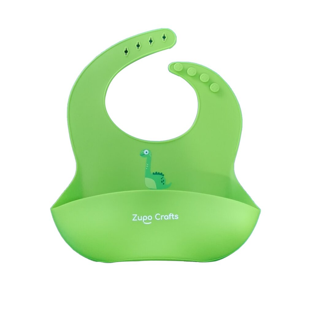 Силіконовий нагрудник-слинявчик Zupo Crafts Dino з карманом гіпоалергенний Зелений