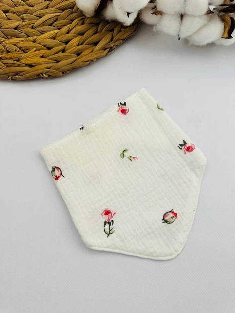 Непромокальний двосторонній нагрудники-слинявчик на кнопках з мусліну білий з малюнком Троянда 40х25х25 см
