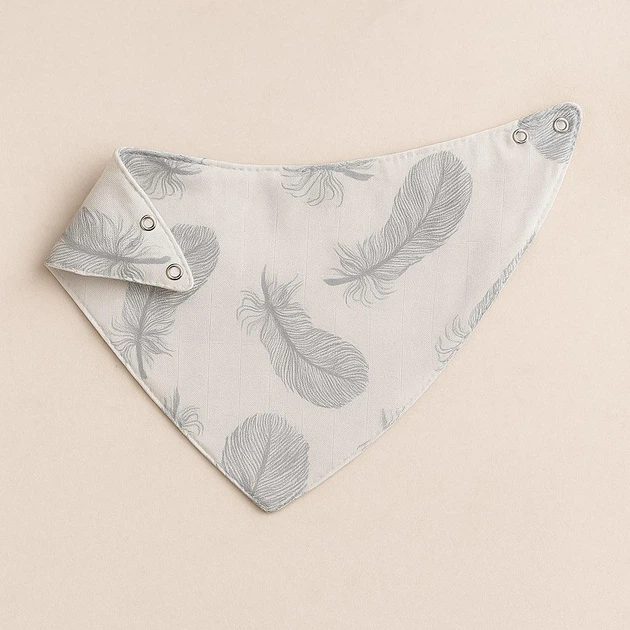 Дитячий непромокальний слинявчик (нагрудник) для новонароджених на кнопці з мусліну BST Пір'я