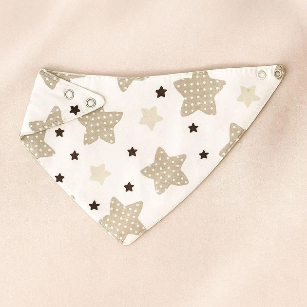 Слинявчик непромокальний тканинний нагрудний, дитячий нагрудник для новонароджених BST Бежеві зірки