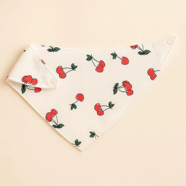 Дитячий непромокальний слинявчик (нагрудник) для новонароджених на кнопці з мусліну BST Вишні