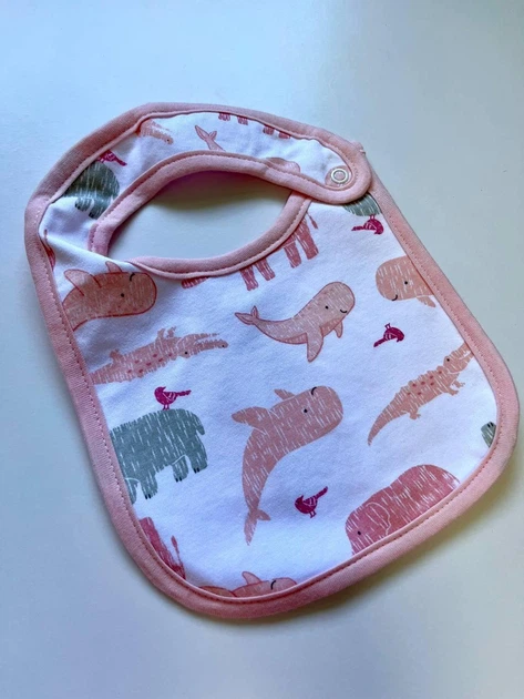 Нагрудник слюнявчик універсальний розмір бавовняний рожевий кити