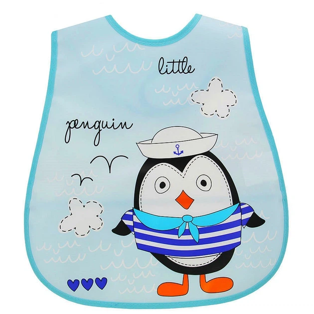Нагрудник, слинявчик водонепроникний ява. Дитячий малюк із кишенею. Пингвин