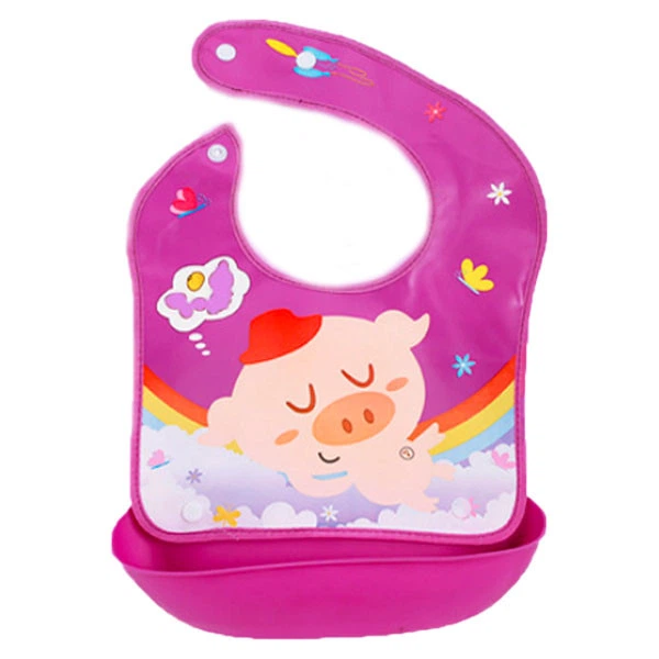Слинявчик з ПВХ відстібними кишенею 35х23 см зі свинкою Рожевий (vol-1061)
