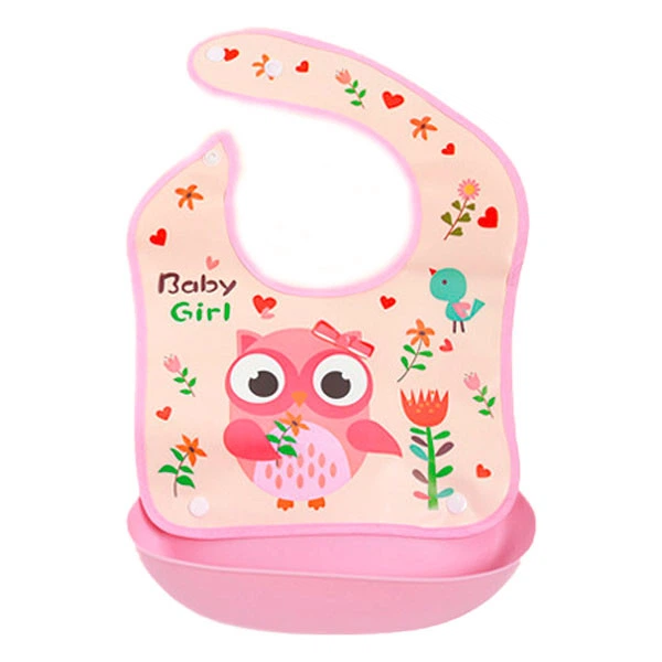 Слинявчик з ПВХ відстібними кишенею 35х23 см з совою Рожевий (vol-1063)