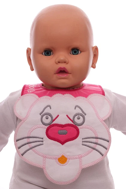 Нагрудник трикотажний для дівчинки 30*20 тигр рожевий 0м+ (37711)