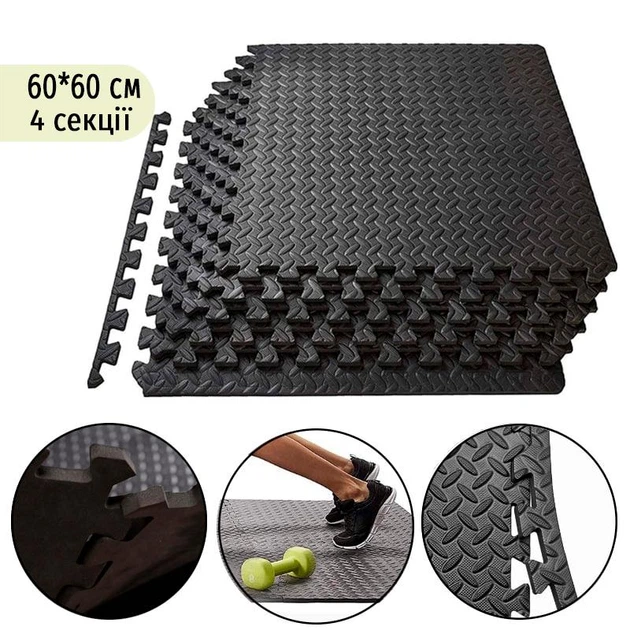 Мат-пазл татами 4 штуки по 60*60*2 см (120*120 см) ластівчин хвіст, покриття для спортзалу Feel Fit Чорний