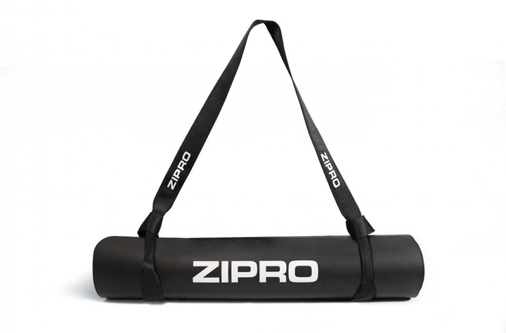 Коврик Zipro Natural Rubber 183x61x0,6 см з ремінцем для йоги чорний