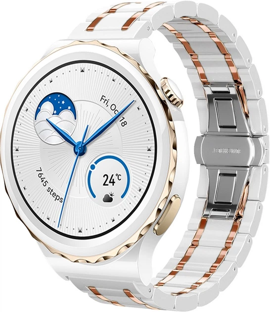 Керамічний Ремінець Ceramo для Huawei Watch GT3 Pro 43mm Pink White (37975-52)