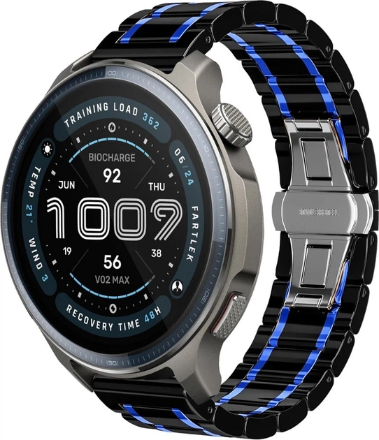 Керамічний ремінець Ceramo для Amazfit Active 2 (Round) Black Blue (42097-43)