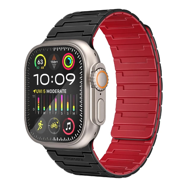 Силіконовий ремінець Promate Magband-MS для Apple Watch 42/44/45/49 мм, серії 1-9, SE, Ultra 1-2 Black (magband-ms.black)