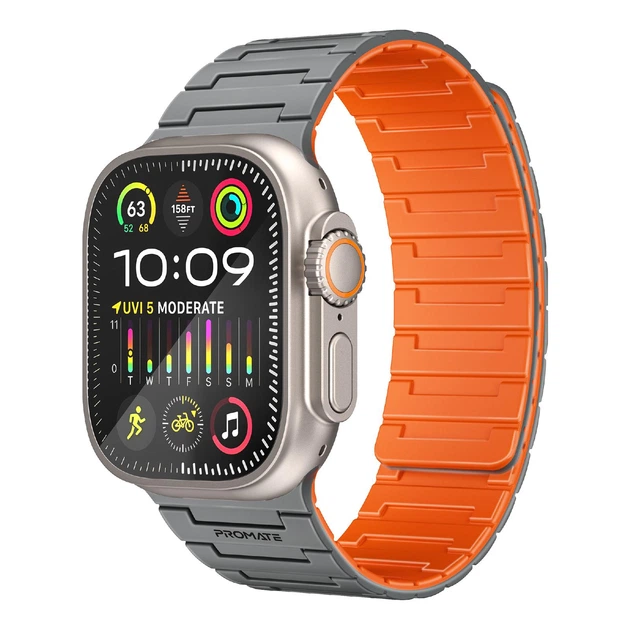 Силіконовий ремінець Promate Magband-MS для Apple Watch 42/44/45/49 мм, серії 1-9, SE, Ultra 1-2 Grey (magband-ms.grey)