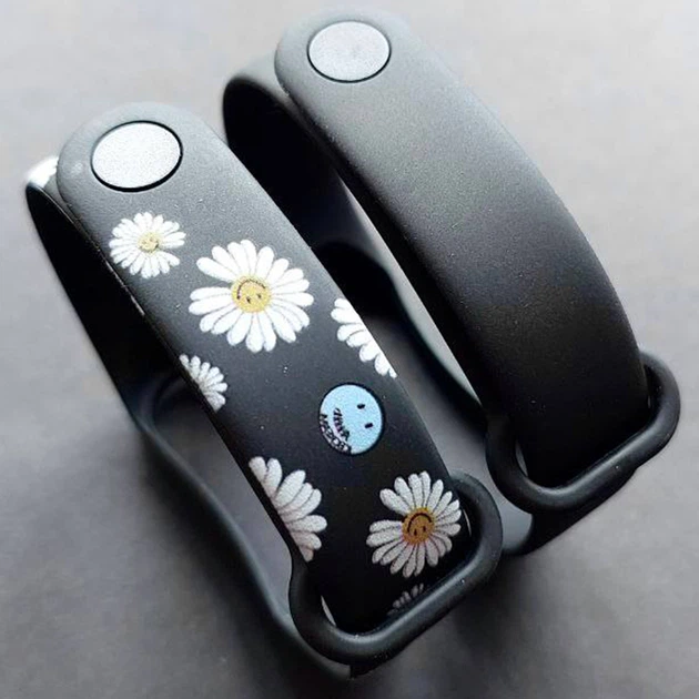 Комплект силіконових ремінців MRK Ромашки 10 для Xiaomi Mi Band 3/4 (два ремінці)+ металева кнопка (mrk6619)