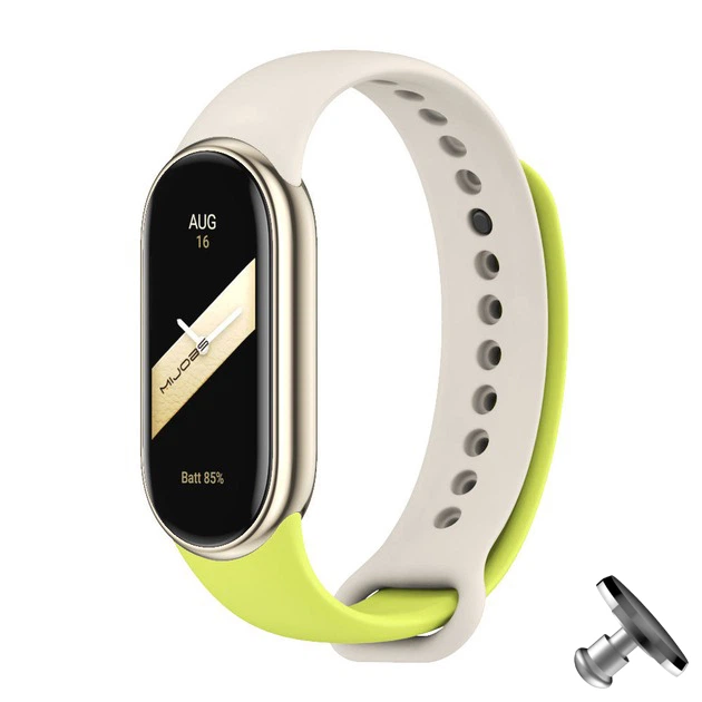 Силіконовий ремінець MiJobs Duo Color для фітнес браслета Xiaomi Mi Band 8/9 з металевим кріпленням Лаймовий + молочний + ме