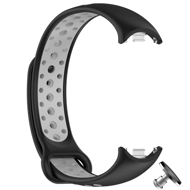Силіконовий ремінець з металевим кріпленням MRK для фітнес браслета Xiaomi Mi Band 8/9/10 Чорний з сірим + металева кнопка (