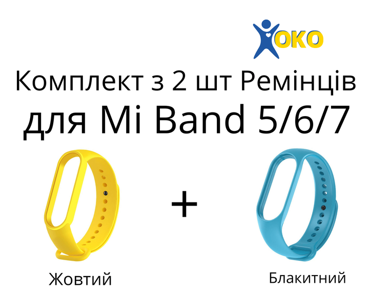 Набір 2 шт Ремінець силіконовий XOKO Sport для Xiaomi Mi Band 5/6/7 Blue + Yellow