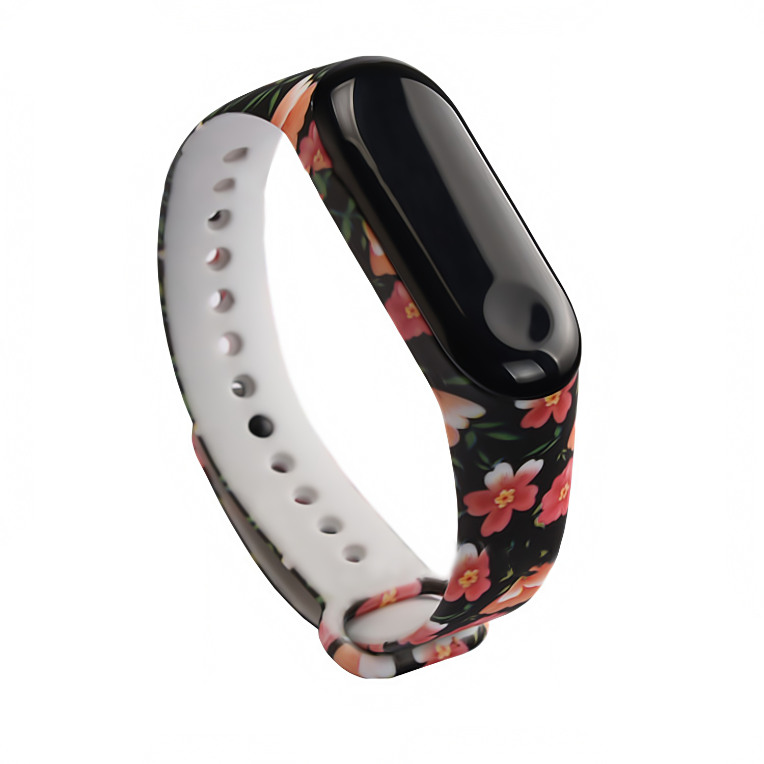 Силіконовий ремінець MRK для фітнес браслета Xiaomi Mi Band 4/3 з малюнком Flowers and black (mrk21042024)