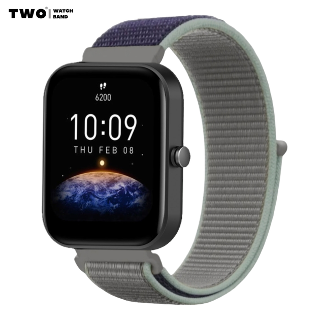 Ремінець для Xiaomi Amazfit Bip 3 / Bip 3 PRO нейлоновий / 20 мм Сірий з темно синім