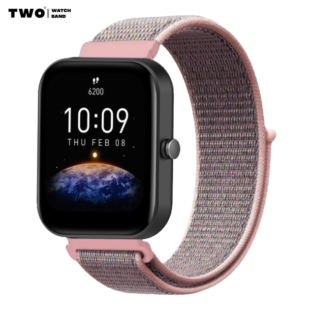 Ремінець для Xiaomi Amazfit Bip 3 / Bip 3 PRO нейлоновий / 20 мм Сірій з легким рожевим