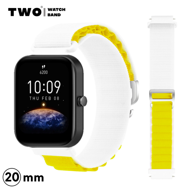 Ремінець для Xiaomi Amazfit Bip 3/Bip 3 PRO нейлоновий Білий з жовтим