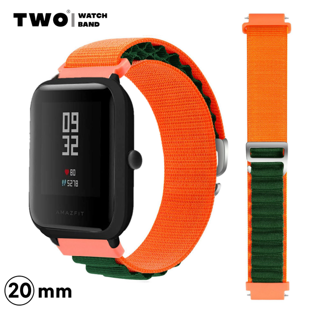 Ремінець для Xiaomi Amazfit Bip/Bip lite/Bip S/Bip S lite нейлоновий Помаранчевий з Темно зеленим