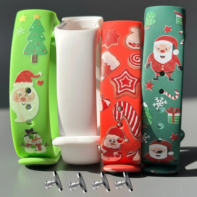Комплект силіконових ремінців MRK Новорічний настрій (4 ремінці) для Xiaomi Mi Band 3/4 + металеві кнопки (mrk3311)