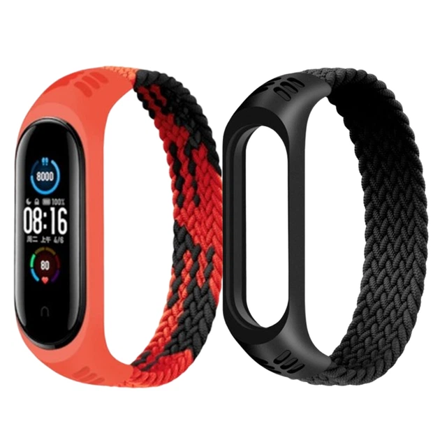 Комплект тканевихремінців Braided Mono Loop MRK для фітнес браслета Xiaomi Mi Band 3/4/5/6/7, розмір S (150мм) Red and Black
