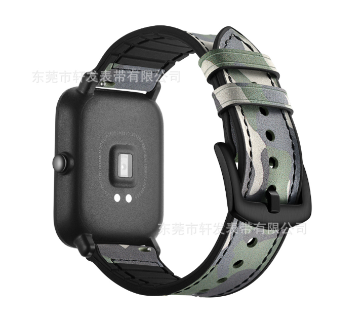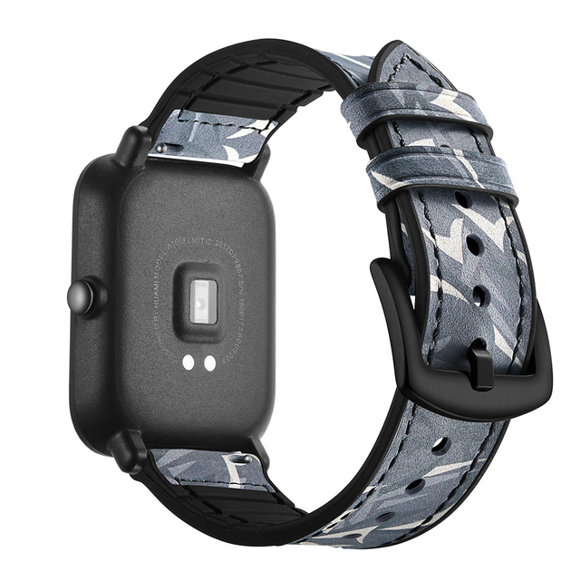 Силіконовий шкіряний ремінець Xiaomi Amazfit Bip / Lite / 20 мм з малюнком Камуфляж Сірий / Чорний 1912P