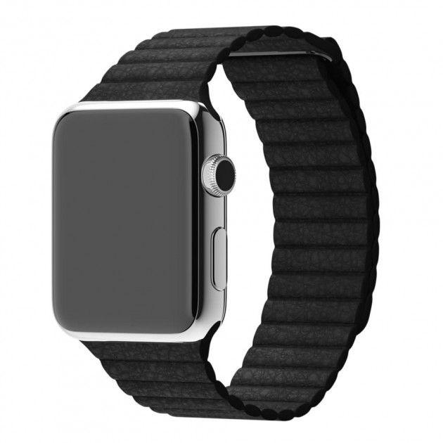 Шкіряний ремінець Leather Loop Band для Apple Watch 42mm/44mm/45mm (01) Black чорний