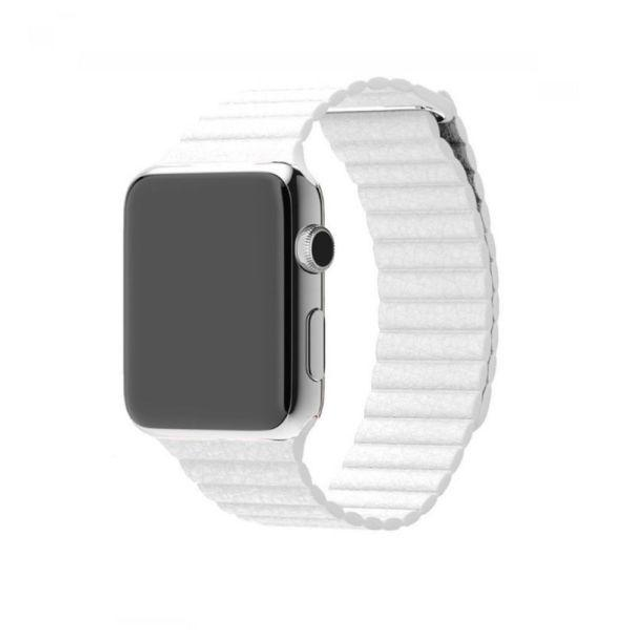 Шкіряний ремінець Leather Loop Band для Apple Watch 42mm/44mm/45mm (06) White білий