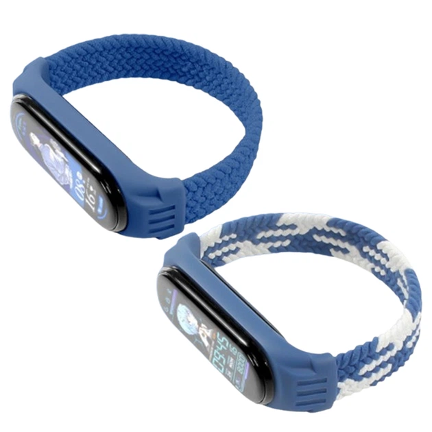 Комплект тканевихремінців Braided Mono Loop MRK для фітнес браслета Xiaomi Mi Band 3/4/5/6/7, розмір S (150мм) Blue and Whit