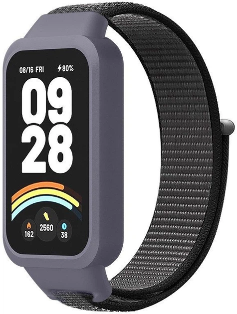 Ремінець тканевий Nylon MRK для фітнес браслета Mi Smart Band 9 Active Gray and Black (mrk6262)