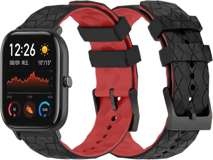 Силіконовий ремінець Lunor для Amazfit GTS Black Red (41698-44)