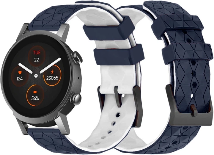 Силіконовий ремінець Lunor для Mobvoi TicWatch E3 Blue White (41714-62)