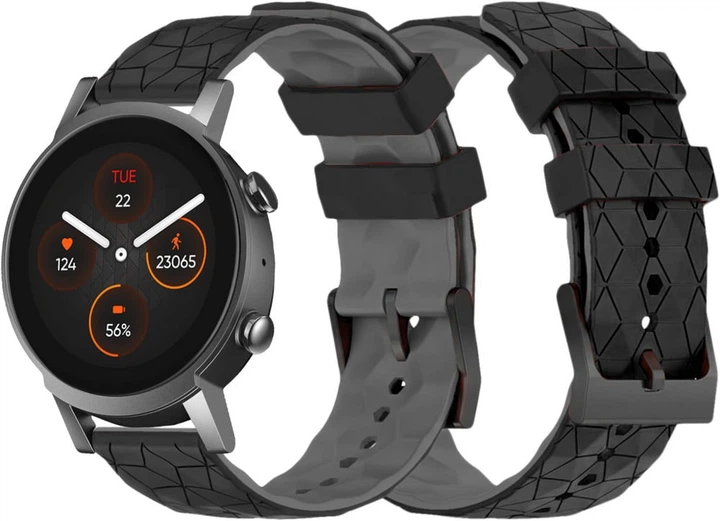 Силіконовий ремінець Lunor для Mobvoi TicWatch E3 Black Grey (41714-53)