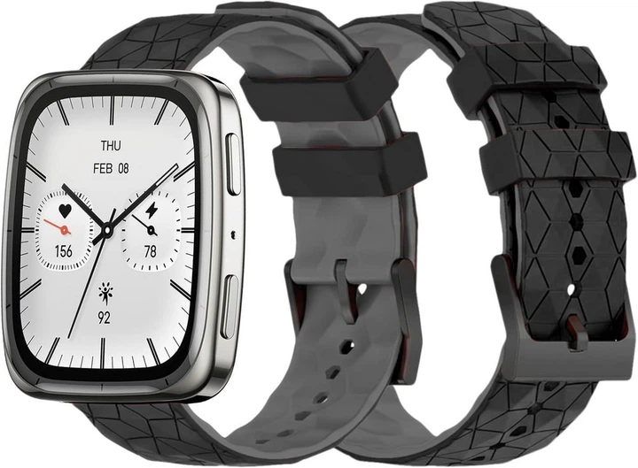 Силіконовий ремінець Lunor для Amazfit Active 2 (Square) Black Grey (42195-53)