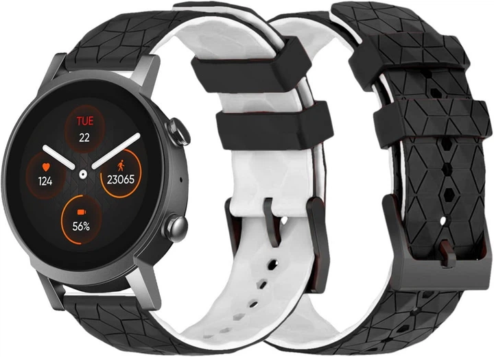 Силіконовий ремінець Lunor для Mobvoi TicWatch E3 Black White (41714-1E)