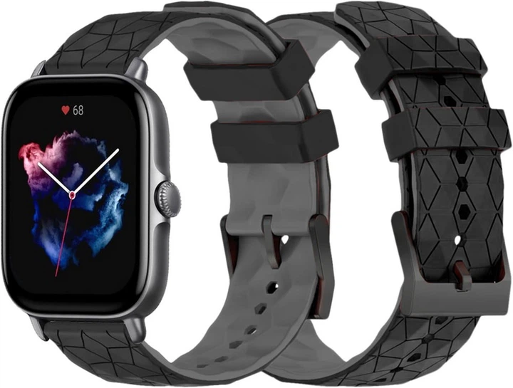 Силіконовий ремінець Lunor для Amazfit GTS 3 Black Grey (41702-53)