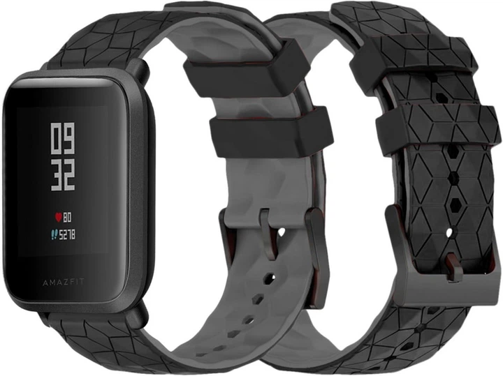 Силіконовий ремінець Lunor для Amazfit Bip Black Grey (41689-53)