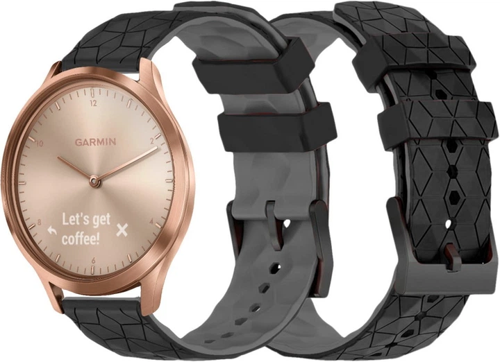 Силіконовий ремінець Lunor для Garmin Vivomove HR Black Grey (41705-53)