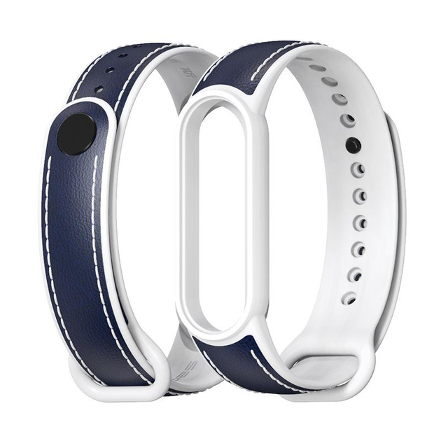 Pемінець MiJobs для Xiaomi Mi Band 5 / 6 силіконовий шкіряний Синій / Білий (2521P)