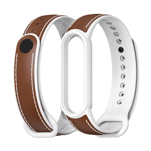 Pемінець MiJobs для Xiaomi Mi Band 5 / 6 силіконовий шкіряний Коричневий / Білий (2521P)