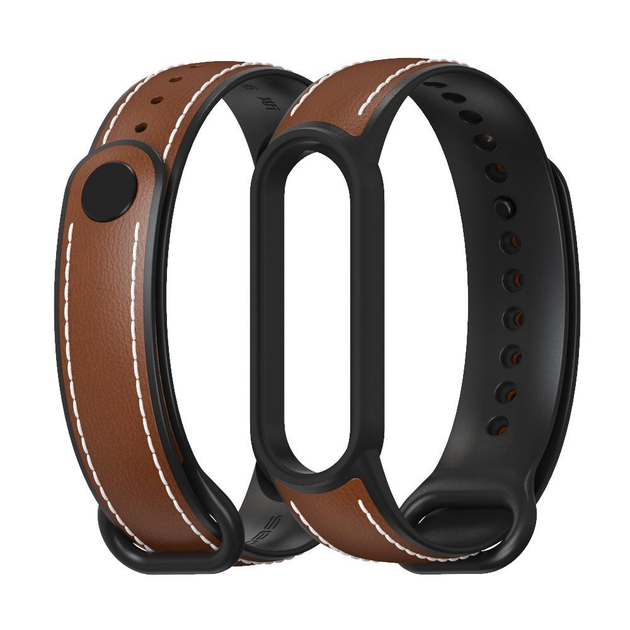 Pемінець MiJobs для Xiaomi Mi Band 5 / 6 силіконовий шкіряний Коричневий / Чорний (2521P)