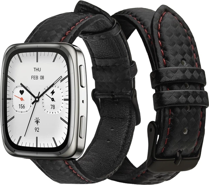Шкіряний ремінець Carbon для Amazfit Active 2 (Square) Black Red (42149-44)