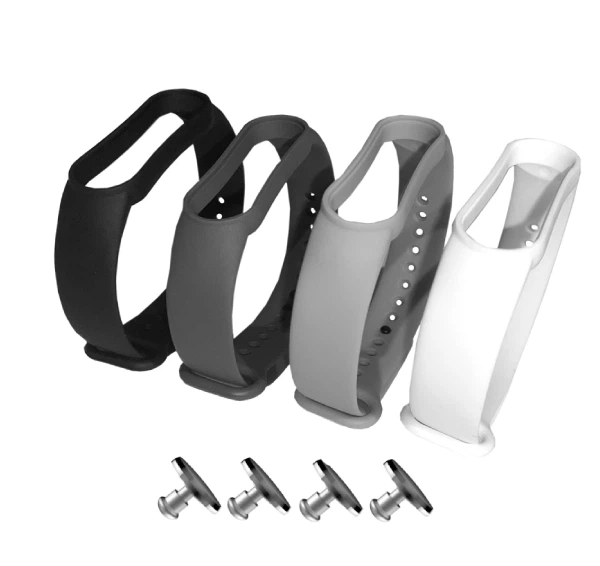 Комплект ремінців MRK для Xiaomi Mi Band 7 Monochrome (білий, сірий, темно-сірий, чорний) + 4 металеві кнопки (mrk2350)