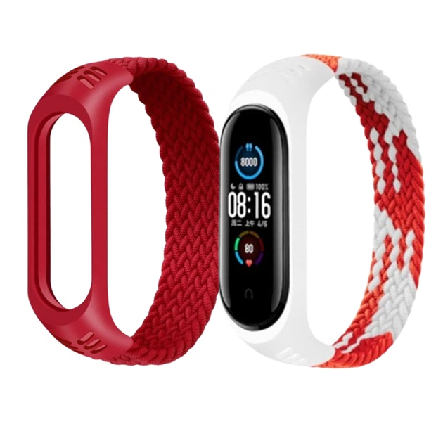 Комплект тканевихремінців Braided Mono Loop MRK для фітнес браслета Xiaomi Mi Band 3/4/5/6/7, розмір М (160мм) Red and Black