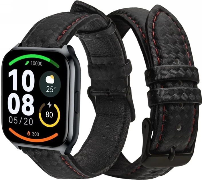 Шкіряний Ремінець Carbon для Haylou Watch 2 Pro (LS02 Pro) Black Red (40795-44)